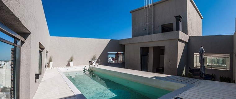 Esa tipología, en el último piso, cuenta además, con acceso a terraza privada (con piscina, lavadero, toilette, parrilla y deck de madera).