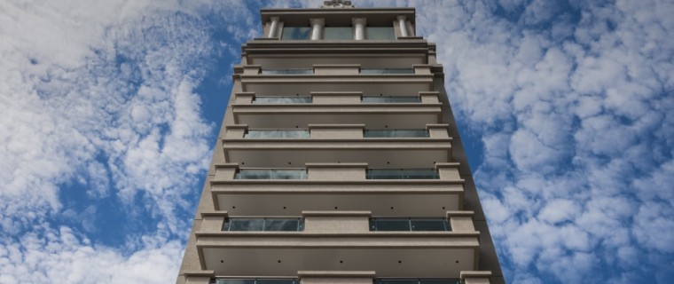 La volumetría resuelve su remate telescópicamente, como lo resuelven los clásicos edificios de gran altura, en busca de esa delicadeza que evita cortes abruptos. En las ciudades con preocupación por la armonía en el conjunto de los edificios, el skyline general también es arquitectura. Incorporamos elementos que jerarquizan el remate como dos pilastras de orden gigante, sostenidas por ménsulas clásicas al modo de Miguel Ángel en la Biblioteca Laurenziana en Florencia. En el remate aparecen elementos de diseño que acentúan la centralidad y la axialidad del conjunto: el último nivel está coronado por una mansarda estilo francés y ojo de buey característico en esa línea.