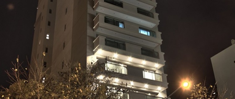 Equinoxe es un edificio de categoría. La fachada nos habla de esa distinción. Se logra un fino equilibrio entre elementos neoclásicos y contemporáneos. El basamento buñado toma una escala adecuada a la altura total del edificio y genera un acceso ceremonial, jerarquizado por la marquesina vidriada, elemento olvidado en nuestro tiempo, que miramos con nostalgia en algunas pocas edificaciones antiguas. Un cantero lineal, con vegetación, resuelve el nexo entre dicho basamento y el desarrollo del edificio. Si miramos los amplios balcones que cuentan los departamentos, podemos ver el delicado equilibrio entre el uso de baranda de piel de vidrio y mampostería con molduras.